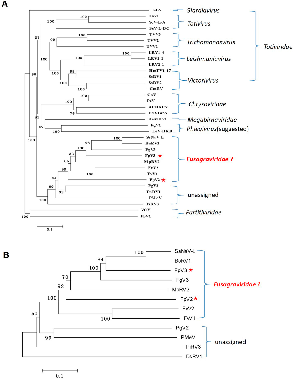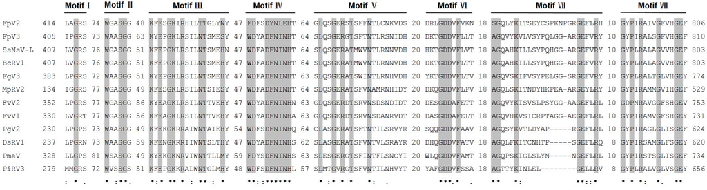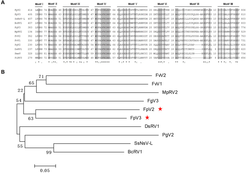 2.2. Both FpV2 and FpV3 Have a Double-Stranded RNA Genome