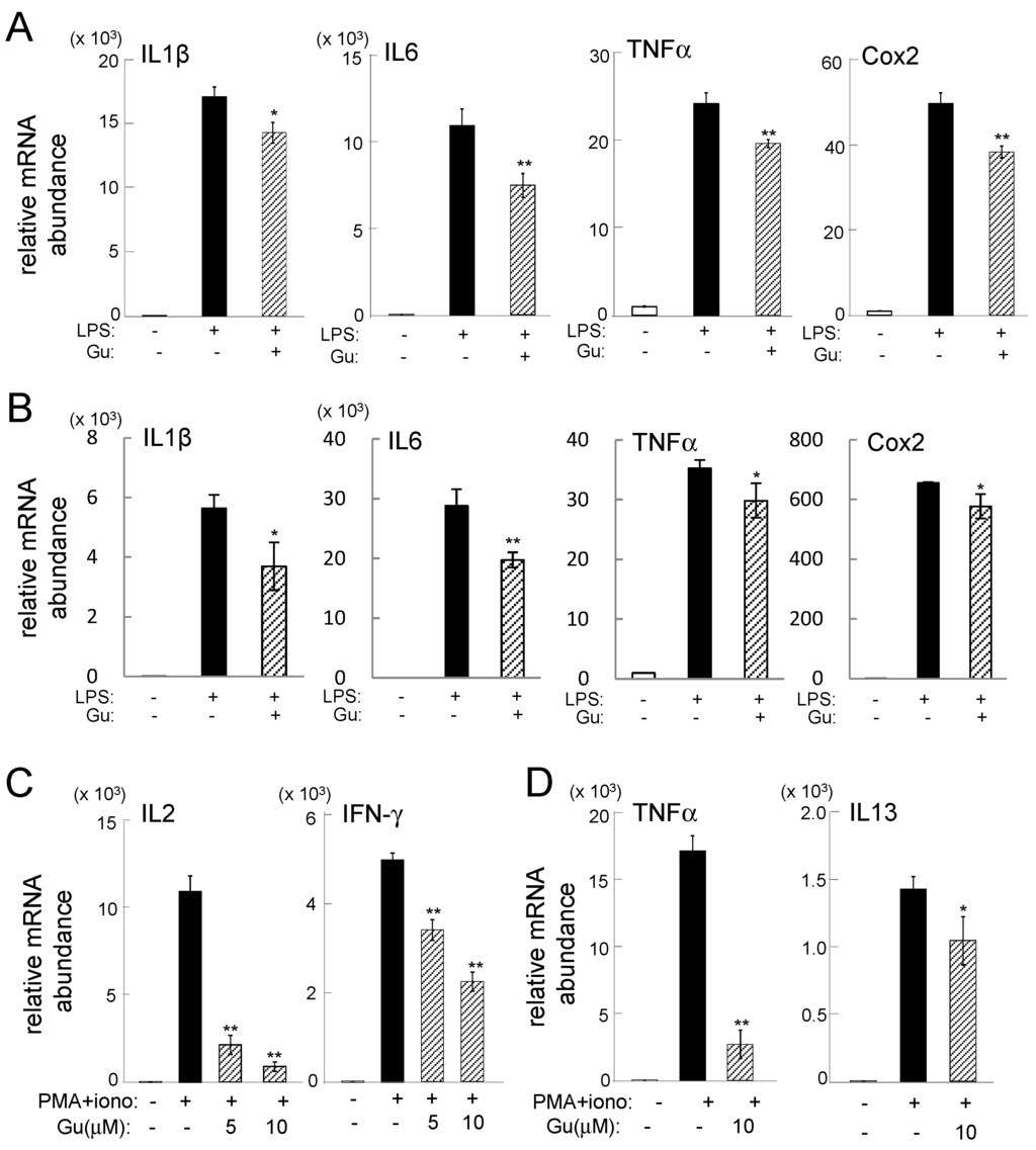 Takigawa S, Chen A, Nishimura A, Liu S, Li B-Y, Sudo A, Yokota H, Hamamura K. Guanabenz Downregulates Inflammatory Responses via eIF2α Dependent and Independent Signaling. International Journal of Molecular Sciences. 2016; 17(5):674. https://doi.org/10.3390/ijms17050674