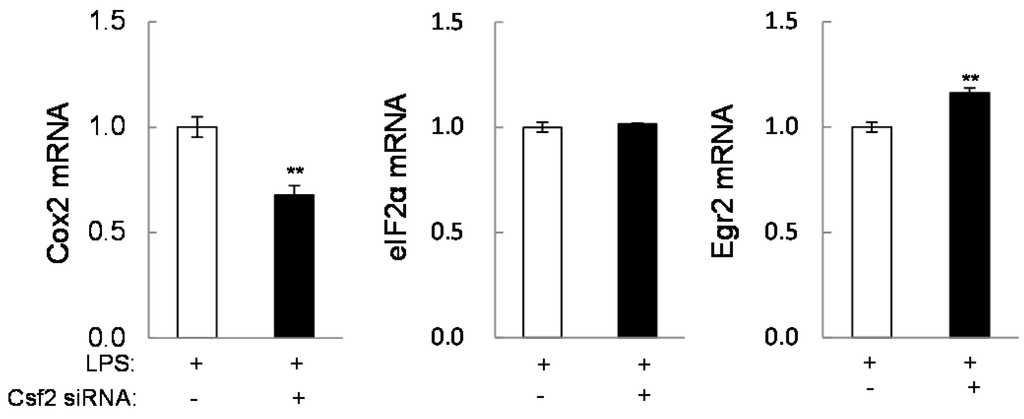 2.4. Potential Linkage of Egr2 and Csf2 to IL1β, TNFα, and Cox2