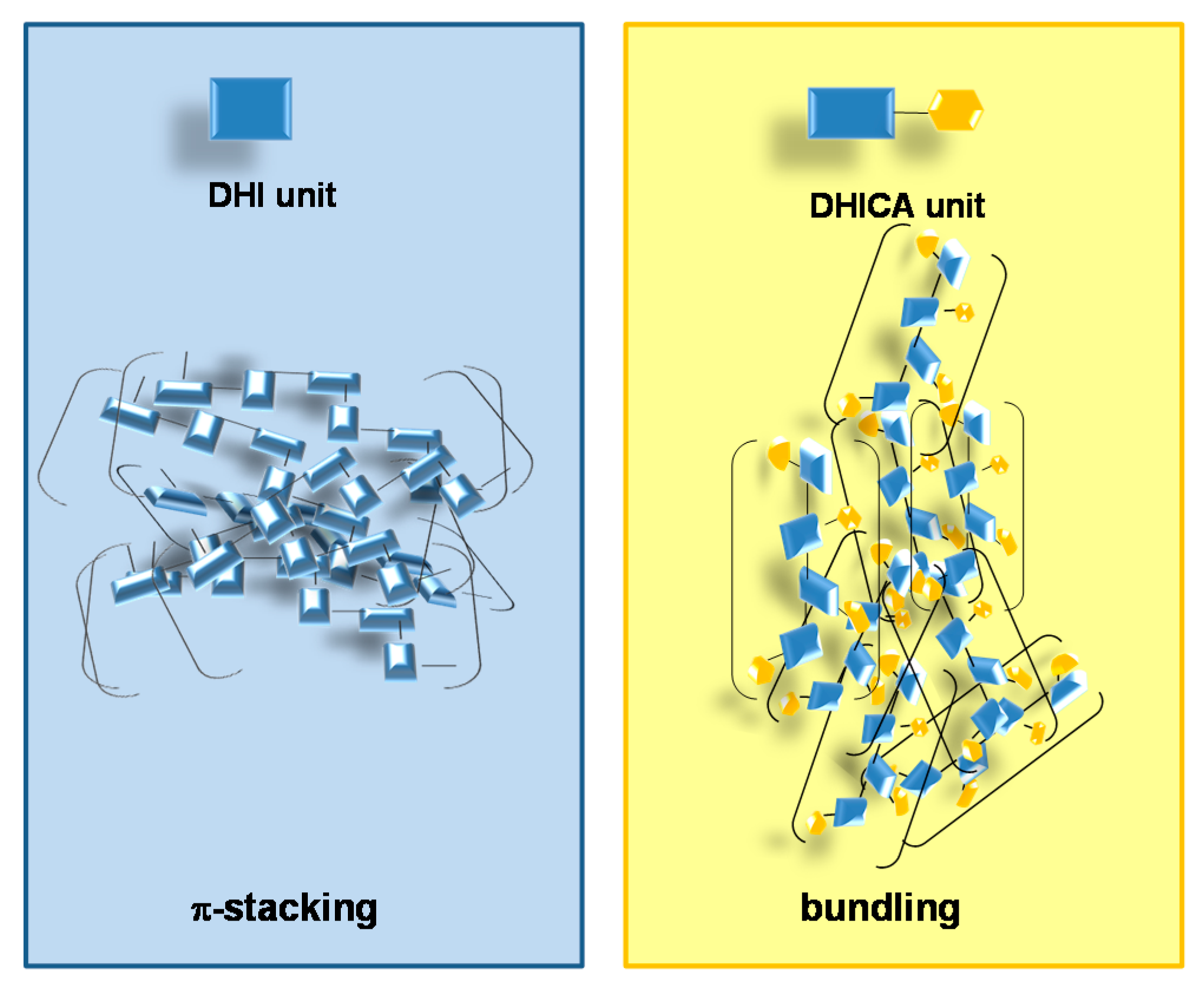Simplified representation of aggregates’ formation for DHI and DHICA melanins.