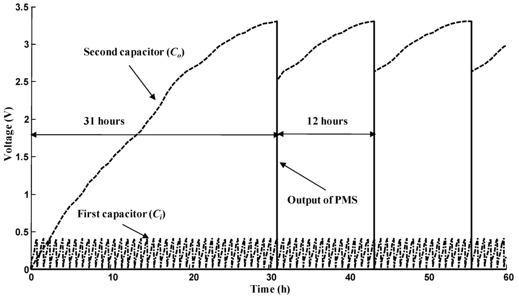 In order to characterize the performance of the PMS, we recorded the voltages on the super-capacitors in the PMS board (Figure 6).