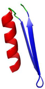 c. Peptides forming hairpin-like β-sheet or α-helical/β-sheet mixed structures stabilized by intramolecular disulphide bonding. This group of peptides is cysteine-rich, contains β-sheet and disulfide bonds. These peptides display a pattern with three or four disulfide bonds which stabilize the mixed α-helical/β-sheet scaffold. Several authors have proposed that the presence of the fourth disulfide bond confers additional stability and compactness in high-salt concentrations typical of seawater environment.