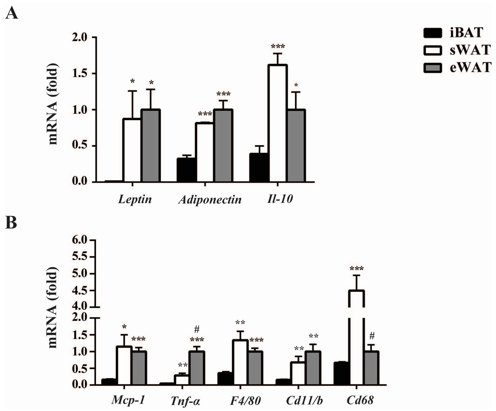 2.1. Inflammatory Adipokines Expression Levels Exhibit Depot-Specificity in Mouse Adipose Tissues