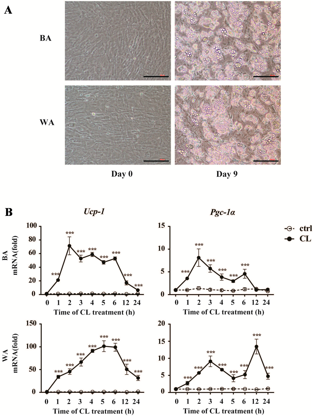2.4. CL316,243 Treatment Alters the Expression of Inflammatory Adipokines in Brown Adipocyte (BA) and White Adipocyte (WA)