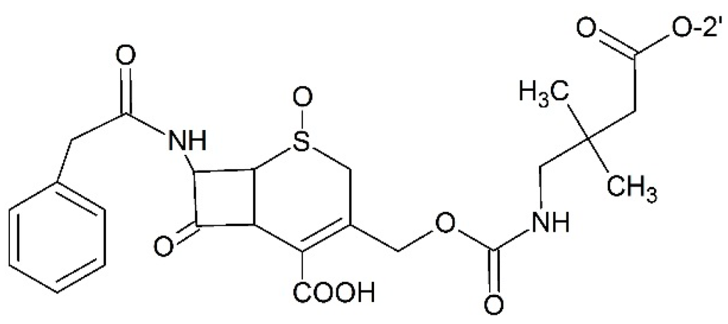 - Vrudhula, V.M.; Kerr, D.E.; Siemers, N.O.; Dubowchik, G.M.; Senter, P.D. Cephalosporin prodrugs of paclitaxel for immunologically specific activation by l-49-sFv-β-Lactamase fusion protein. Bioorg. Med. Chem. Lett. 2003, 13, 539–542. [Google Scholar] [CrossRef]