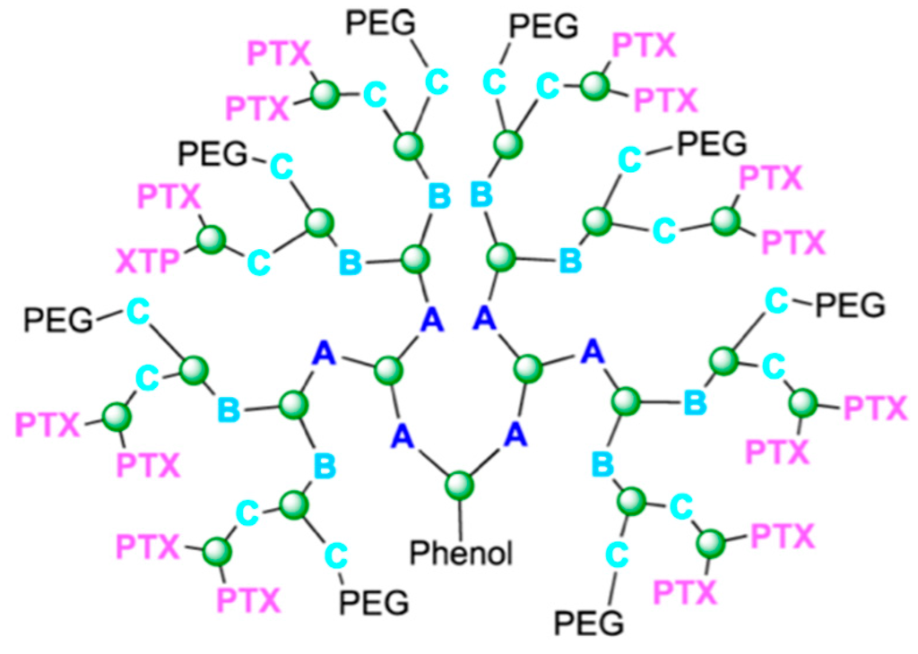 Although PEG is potent for paclitaxel conjugates, it is also challenged by its intrinsic property that it has only two drug loading sites at each end of the polymer. This limitation prompted the development of PEG copolymers.