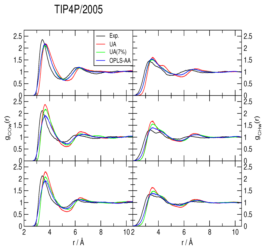 which is the default combination for the OPLS-AA force-field, whereas with the UA methane, the arithmetic mean was used for . Furthermore, the 7% correction recommended in [41] was also applied to ϵC,O, thus yielding nine model combinations that will henceforth be referred to as labeled in Table 1.