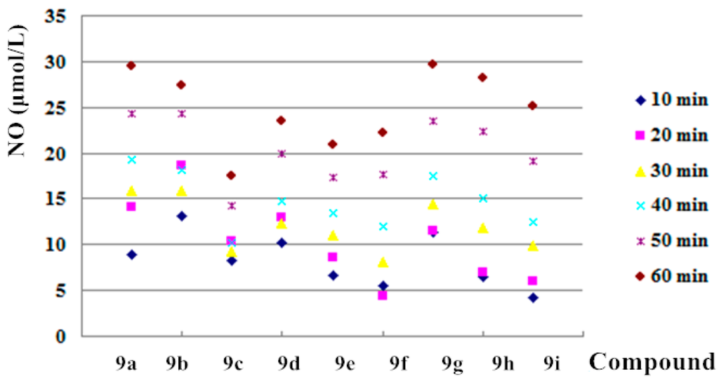 NO-releasing ability of compounds 9a–i.