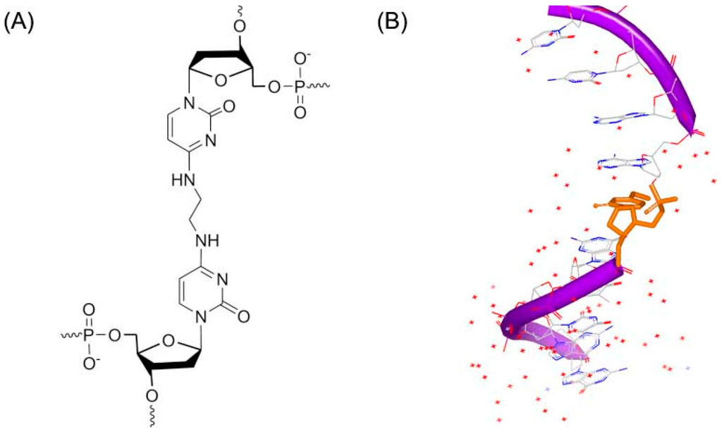 - Huang, H.; Dooley, P.A.; Harris, C.M.; Harris, T.M.; Stone, M.P. Differential base stacking interactions induced by trimethylene interstrand DNA cross-links in the 5′-CpG-3′ and 5′-GpC-3′ sequence contexts. Chem. Res. Toxicol. 2009, 22, 1810–1816. [Google Scholar] [CrossRef] [PubMed]