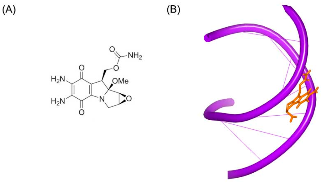 - Sastry, M.; Fiala, R.; Lipman, R.; Tomasz, M.; Patel, D.J. Solution structure of the monoalkylatedmitomycin c-DNA complex. J. Mol. Biol. 1995, 247, 338–359. [Google Scholar] [CrossRef] [PubMed]