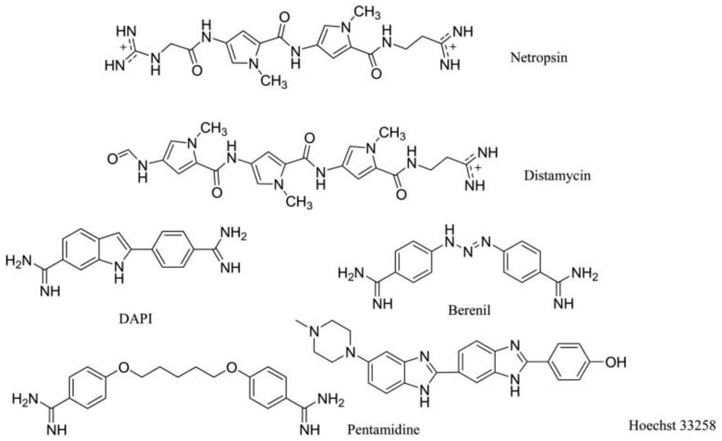 2.1.2. Small Molecules Targeting with DNA Duplex in Minor Groove