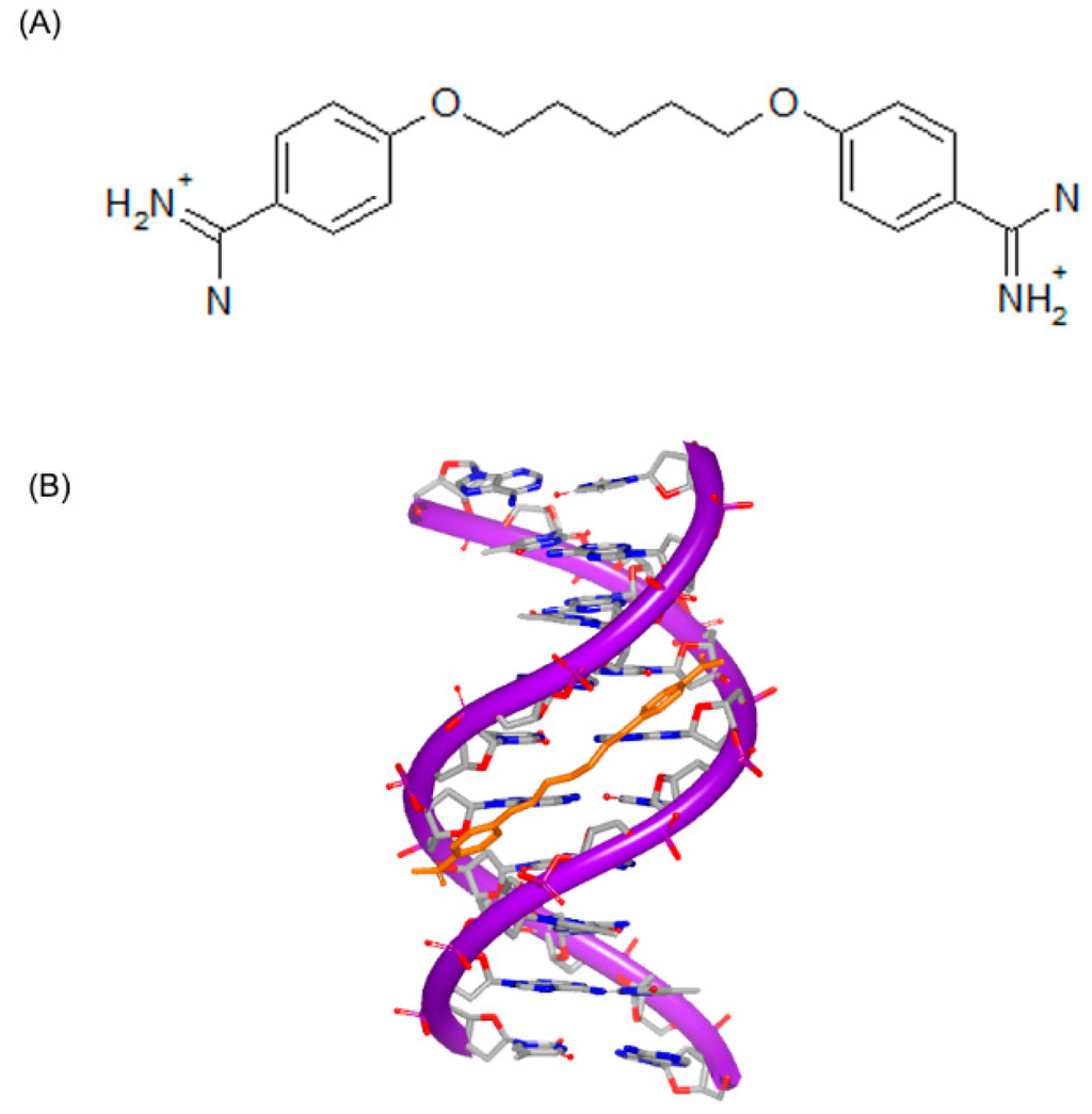 - Moreno, T.; Pous, J.; Subirana, J.A.; Campos, J.L. Coiled-coil conformation of a pentamidine-DNA complex. Acta Crystallogr. D Biol. Crystallogr. 2010, 66, 251–257. [Google Scholar] [CrossRef] [PubMed]