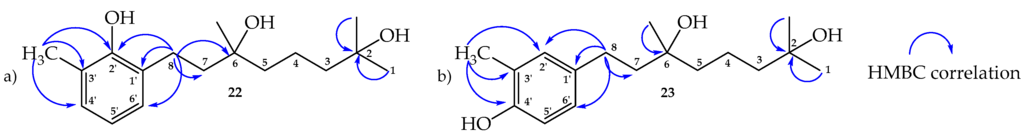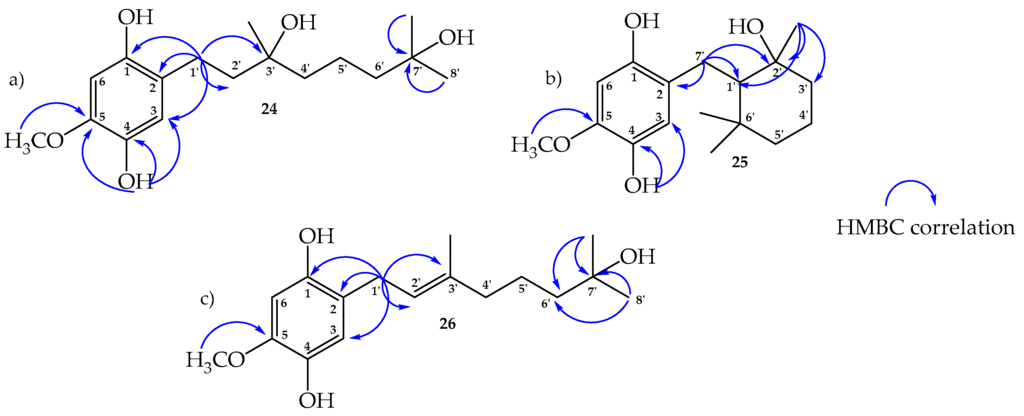 - Simon-Levert, A.; Arrault, A.; Bontemps-Subielos, N.; Canal, C.; Banaigs, B. Meroterpenes from the ascidian Aplidium aff. densum. J. Nat. Prod. 2005, 68, 1412–1415. [Google Scholar] [CrossRef] [PubMed]
