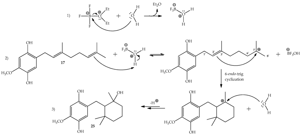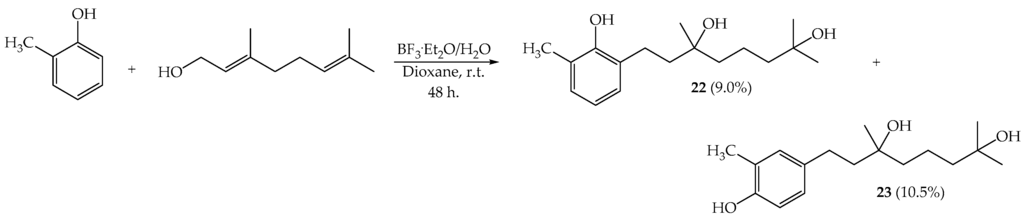 3.2.4. Reaction of Geranylated Phenols with BF3·Et2O