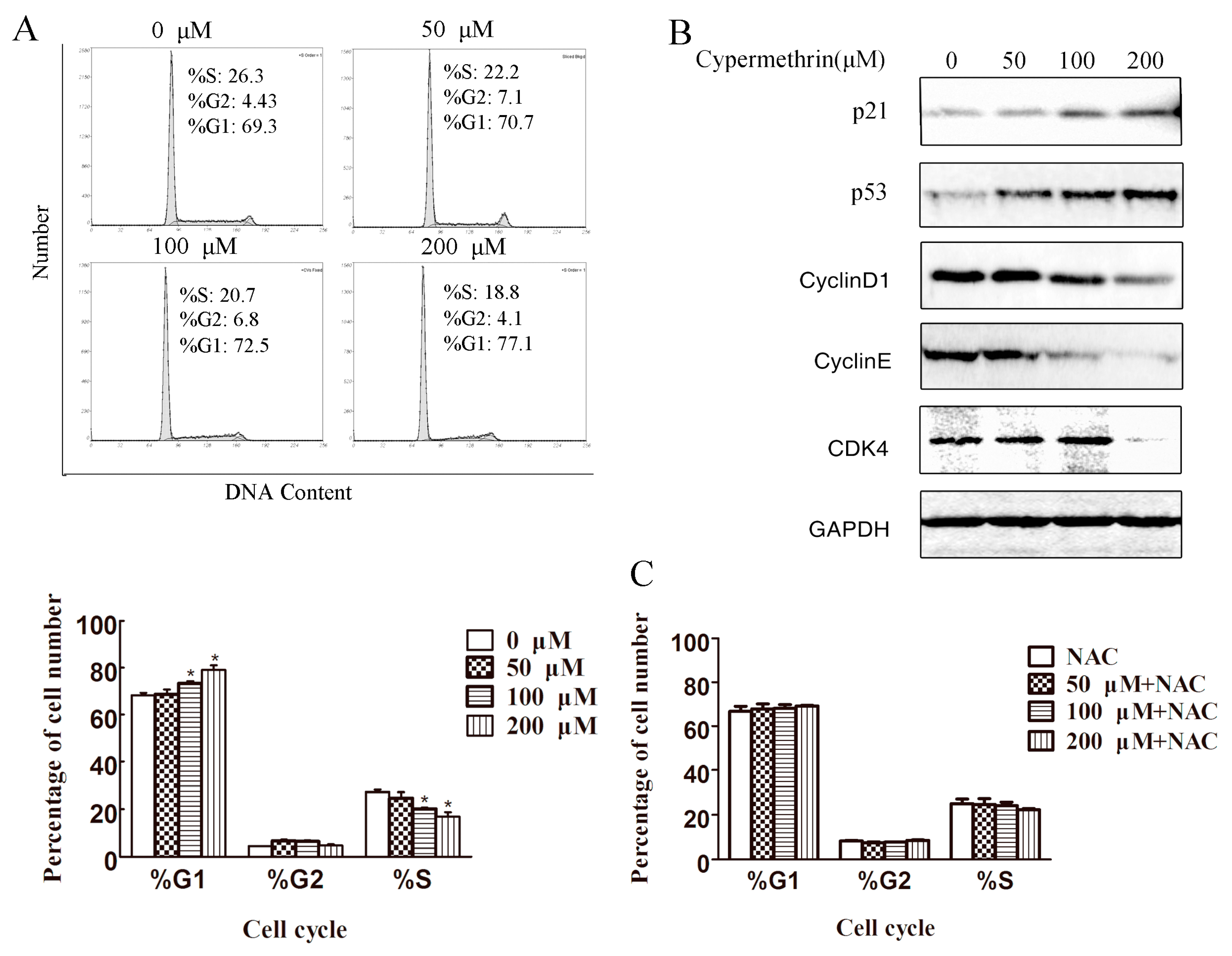 2.2. Induction of G1 Cell Cycle Arrest in Raw 264.7 Cells by Cypermethrin