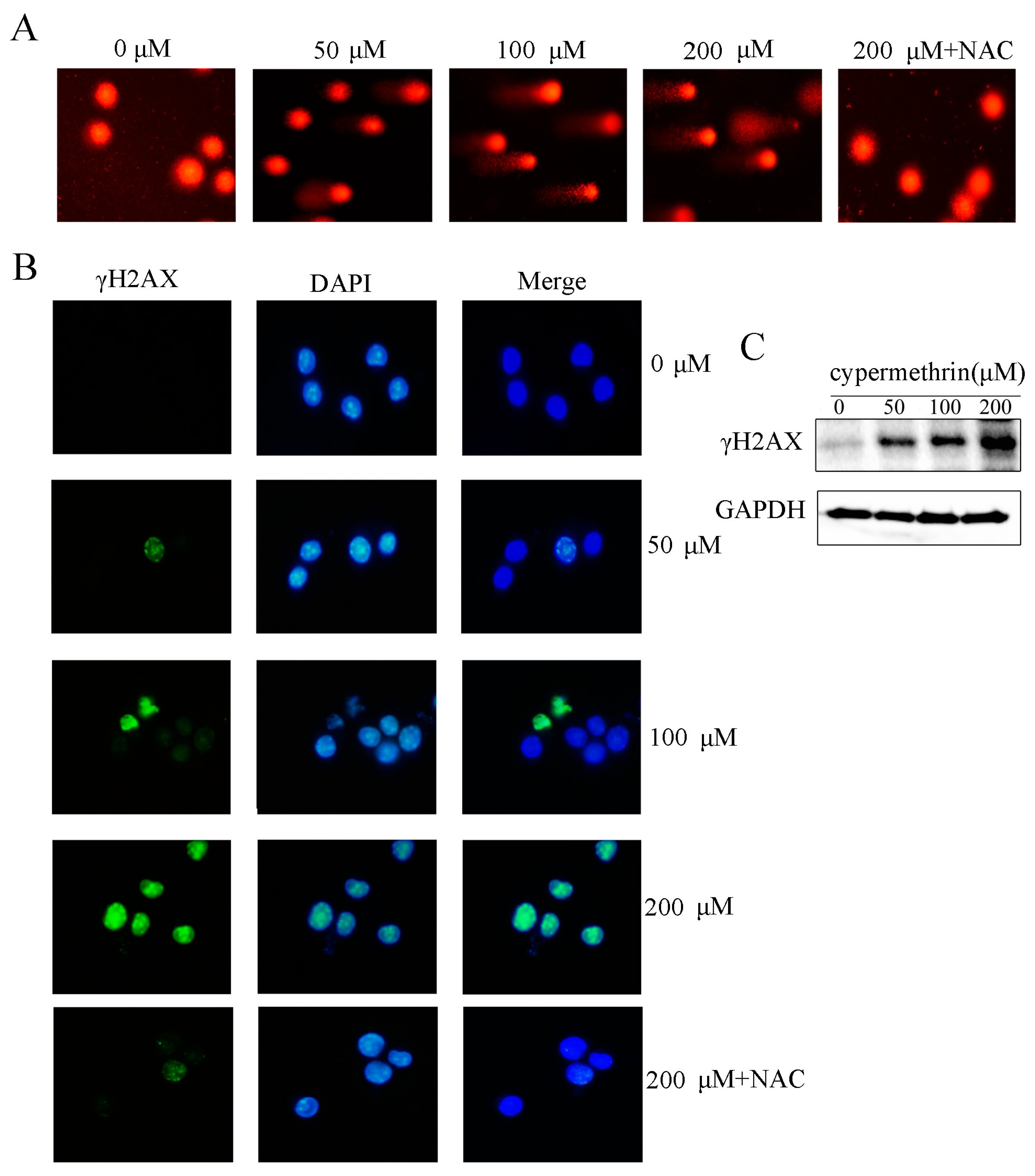 2.3. Cypermethrin-Induced ROS Generation Mediated RAW Cell Apoptosis via Causing DNA Damage
