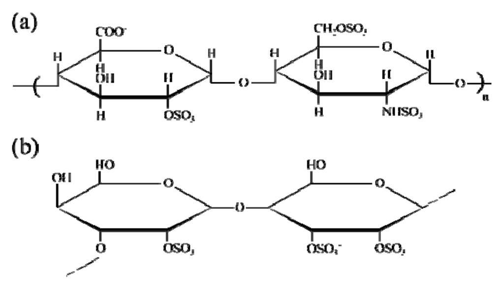 - Azevedo, T.C.G.; Bezerra, M.E.B.; Santos, M.D.G.D.L.; Souza, L.A.; Marques, C.T.; Benevides, N.M.B.; Leite, E.L. Heparinoids algal and their anticoagulant, hemorrhagic activities and platelet aggregation. Biomed. Pharmacother. 2009, 63, 477–483. [Google Scholar] [CrossRef] [PubMed]