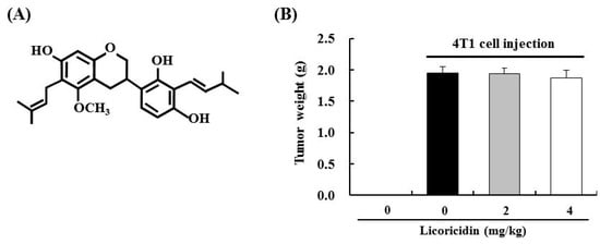 Chicago/Turabian StylePark, So Young, Soo Jin Kwon, Soon Sung Lim, Jin-Kyu Kim, Ki Won Lee, and Jung Han Yoon Park. 2016. "Licoricidin, an Active Compound in the Hexane/Ethanol Extract of Glycyrrhiza uralensis, Inhibits Lung Metastasis of 4T1 Murine Mammary Carcinoma Cells" International Journal of Molecular Sciences 17, no. 6: 934. https://doi.org/10.3390/ijms17060934