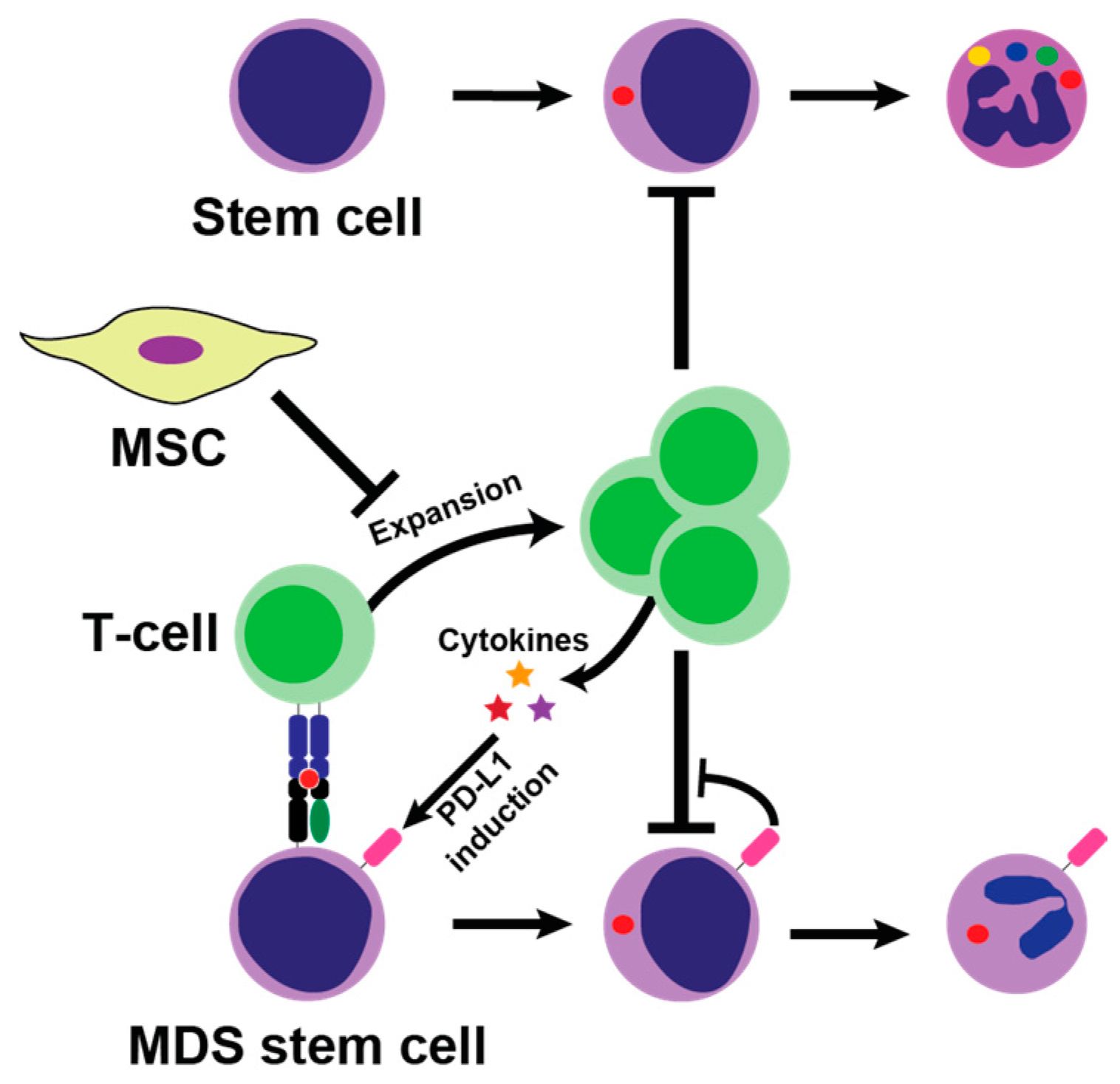 T-cell mediated suppression of hematopoietic stem cells has been recognized as an attribute of aplastic anemia [41]; distinction of this entity from hypoplastic MDS can be difficult. Recent advances in the mutational mapping have demonstrated that almost half of the patients with aplastic anemia harbor mutations characteristic of MDS, indicating that at least some of these patients may indeed have MDS associated with T-cell activation [42].