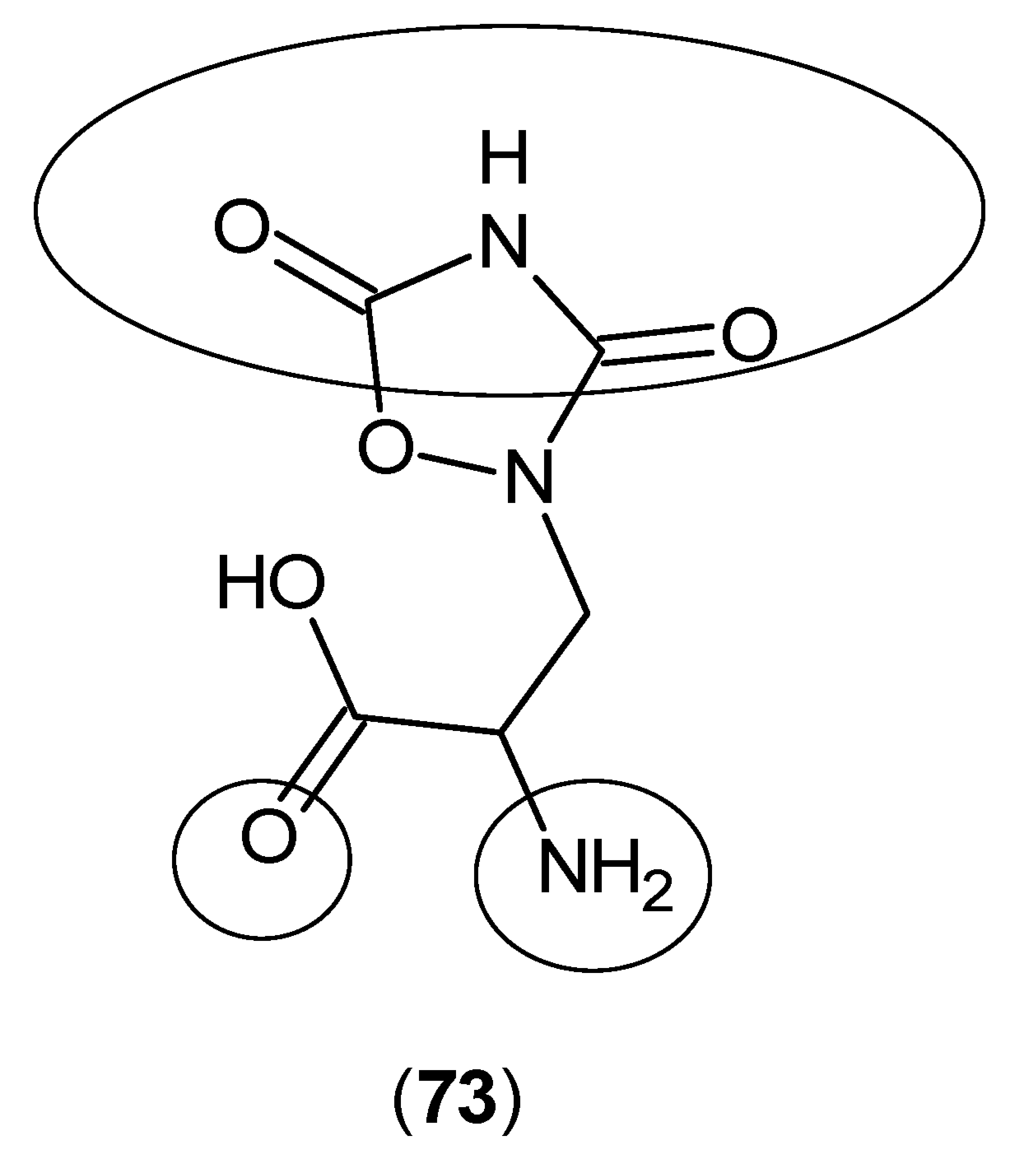 Furthermore, a group of simple glutamate receptor ligands was examined for inhibitory activities against KAT-1 and 2, and it was shown that quisqualate (73) (Figure 18) is able to inhibit the production of KYNA [].