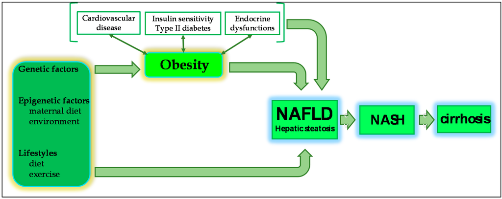Obesity and Non-Alcoholic Fatty Liver Disease (NAFLD). Abbreviations: NAFLD: non-alcoholic fatty liver disease; NASH: non-alcoholic steatohepatitis.