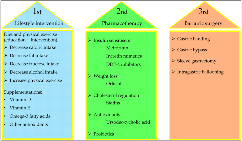- DeVore, S.; Kohli, R.; Lake, K.; Nicholas, L.; Dietrich, K.; Balistreri, W.F.; Xanthakos, S.A. A multidisciplinary clinical program is effective in stabilizing BMI and reducing transaminase levels in pediatric patients with NAFLD. J. Pediatr. Gastroenterol. Nutr. 2013, 57, 119–123. [Google Scholar] [CrossRef] [PubMed]