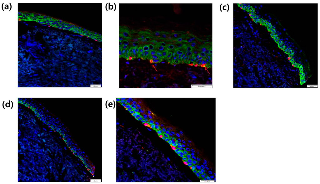 2.8. Intra-Epidermal Distribution of CCR2 and Rb in SL Tissue Evaluated by Confocal Laser Microscopy