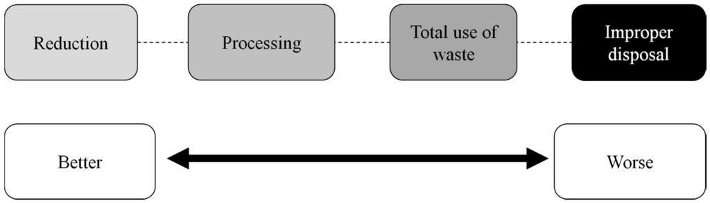 The current trend is to employ production processes that do not harm the environment or that can reduce the release of waste, considering that the best process is the one that reduces generation of waste and the worst process is the one that generates waste, which is improper for disposal (Figure 1).