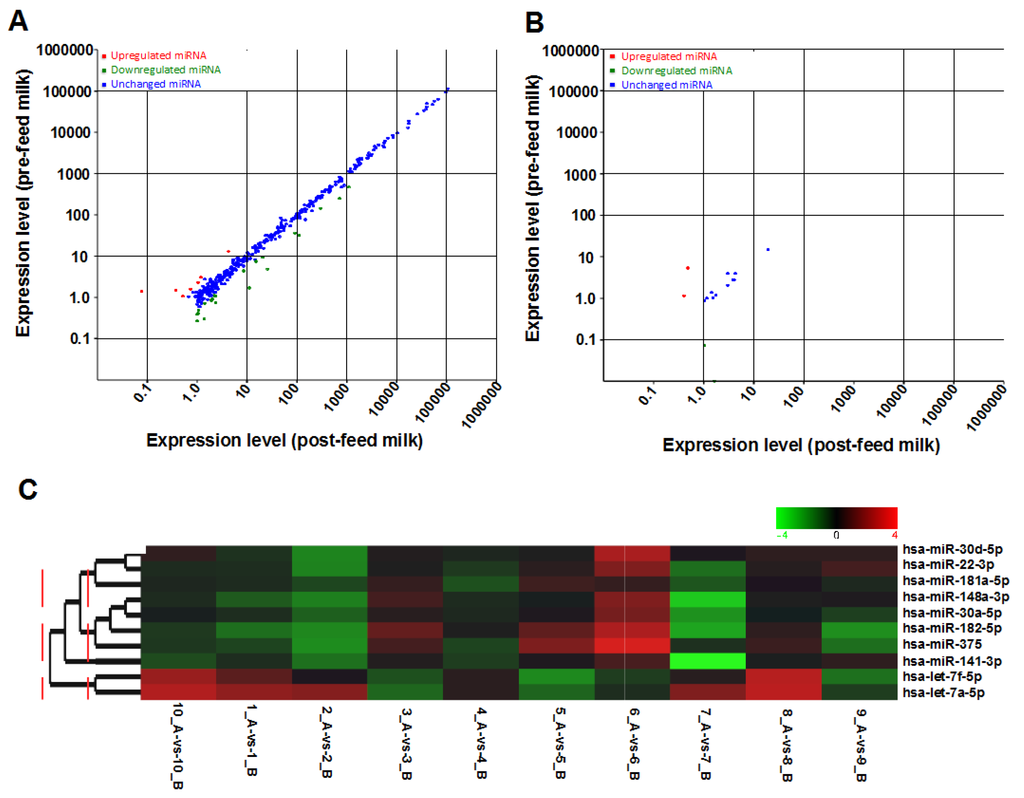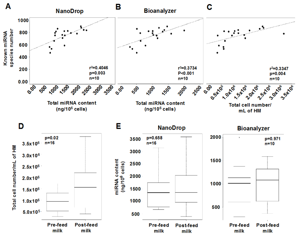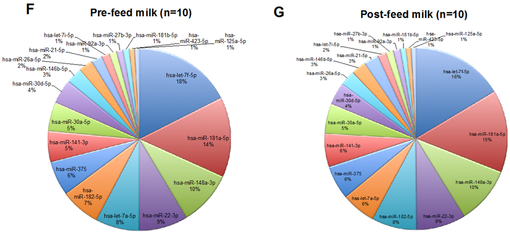 2.2. Effects of Feeding on the miRNA Content of Human Milk Cells