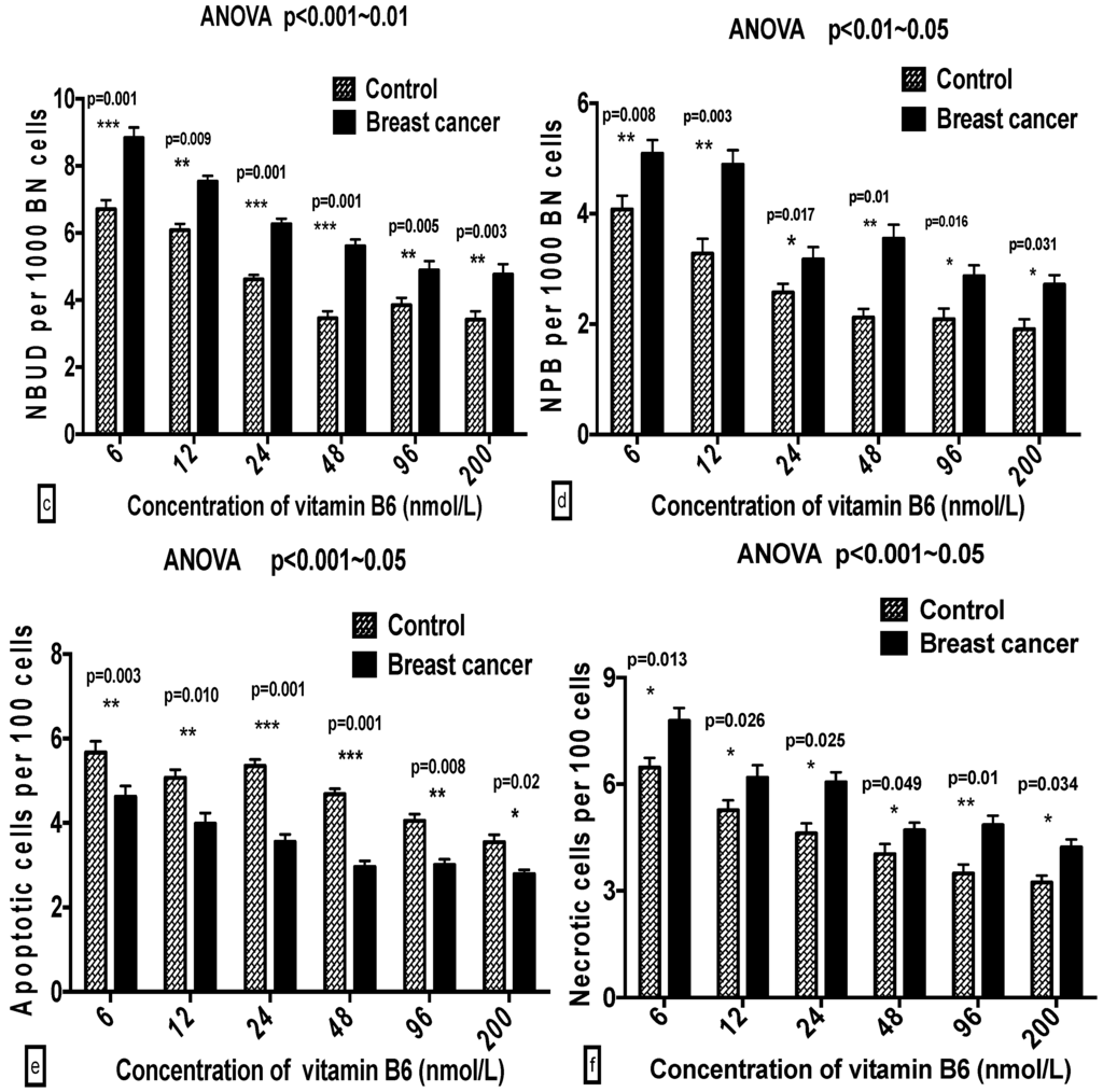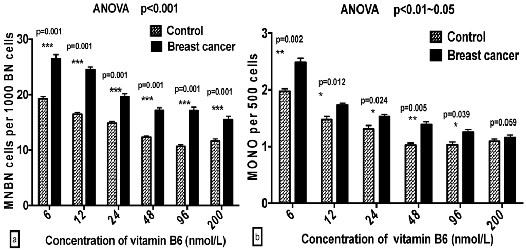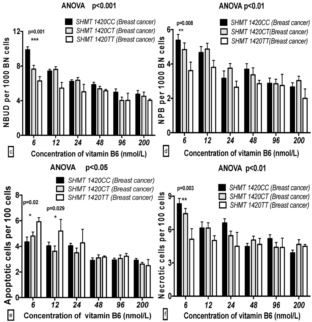 Chicago/Turabian StyleWu, Xiayu, Weijiang Xu, Tao Zhou, Neng Cao, Juan Ni, Tianning Zou, Ziqing Liang, Xu Wang, and Michael Fenech. 2016. "The Role of Genetic Polymorphisms as Related to One-Carbon Metabolism, Vitamin B6, and Gene–Nutrient Interactions in Maintaining Genomic Stability and Cell Viability in Chinese Breast Cancer Patients" International Journal of Molecular Sciences 17, no. 7: 1003. https://doi.org/10.3390/ijms17071003