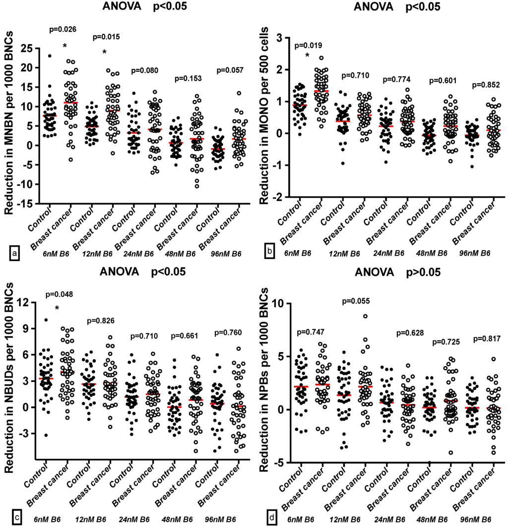 2.4. Effect of B6 and Breast Cancer Status on GSACV