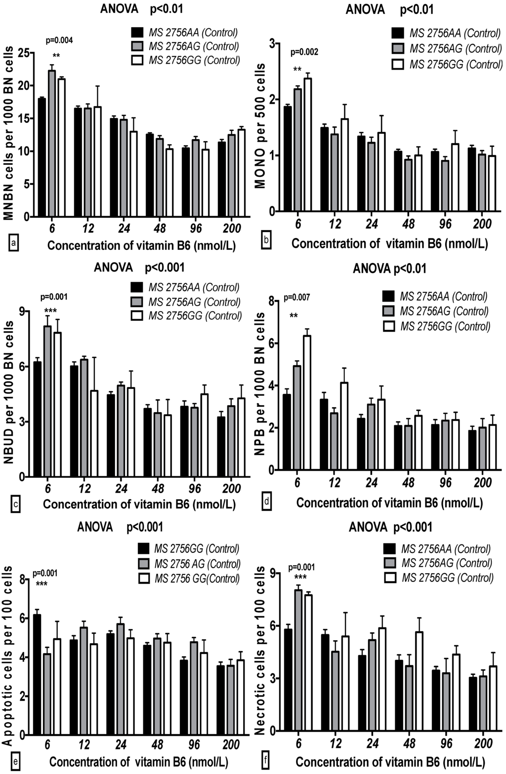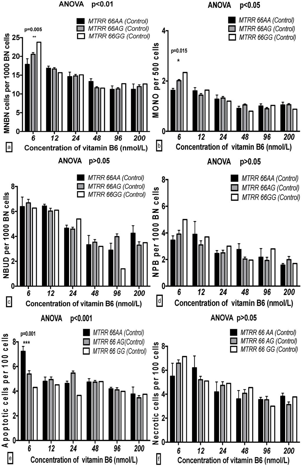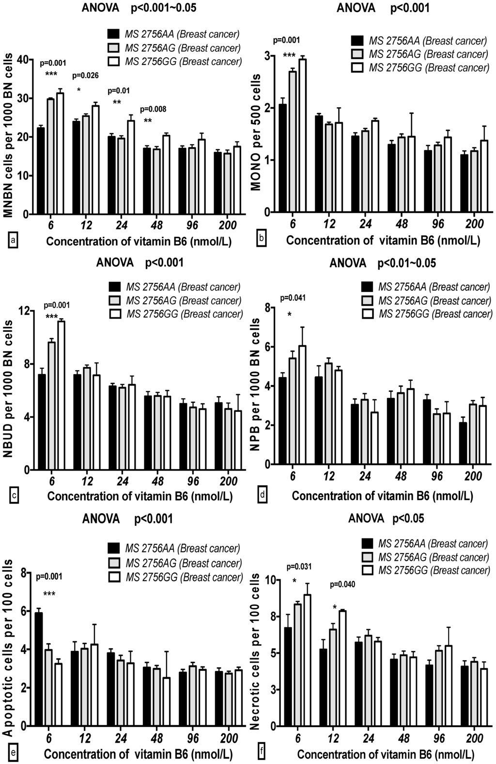 2.5. The GSACV Indexes in Different SHMT C1420T, MS A2756G, and MTRR A66G Genotypes in Breast Cancer Cases and Controls at Various B6 Concentrations