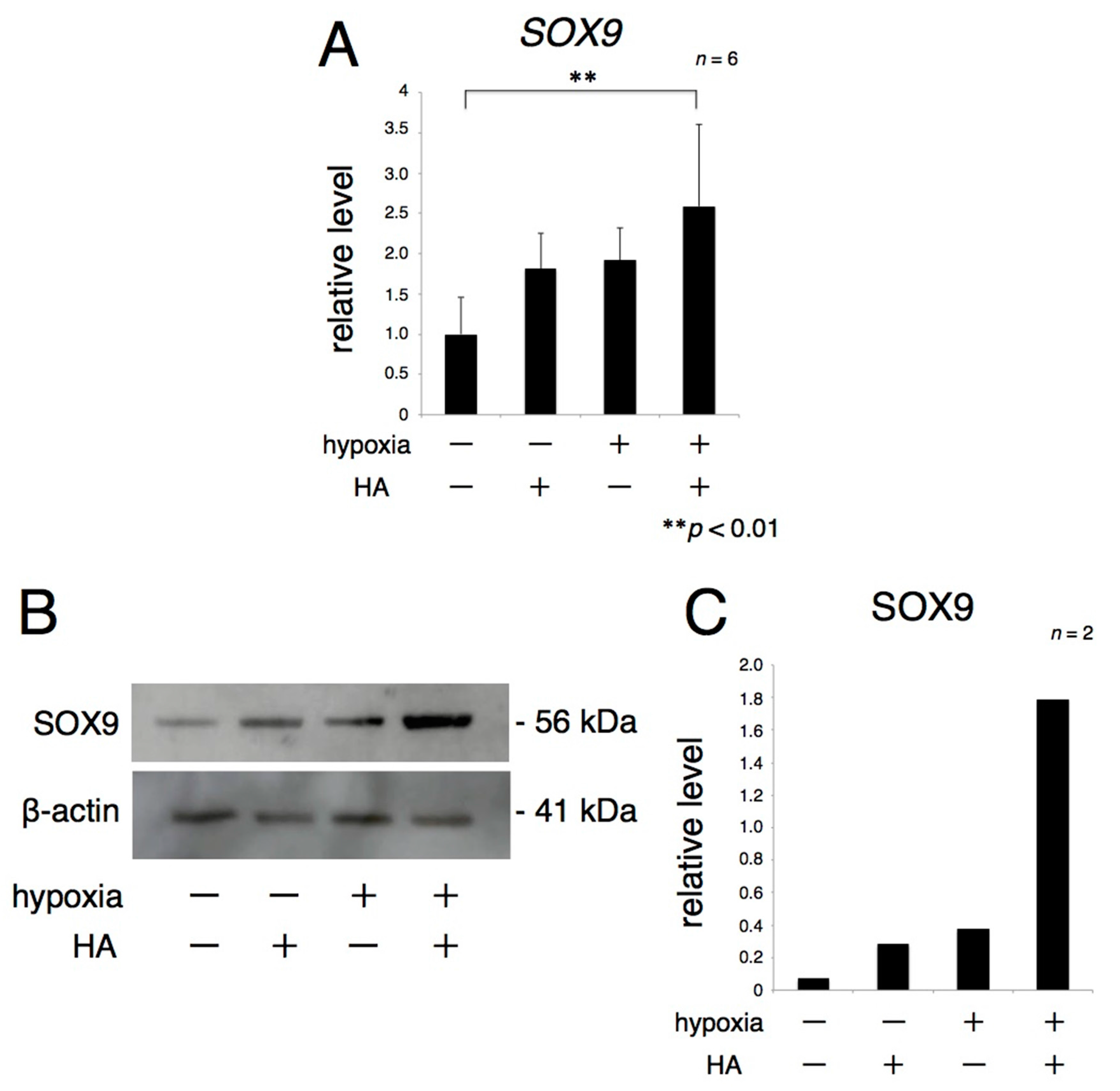 2.2. The Expression of Sex-Determining Region Y Box 9 (SOX9) Is Enhanced by Hypoxia with HA