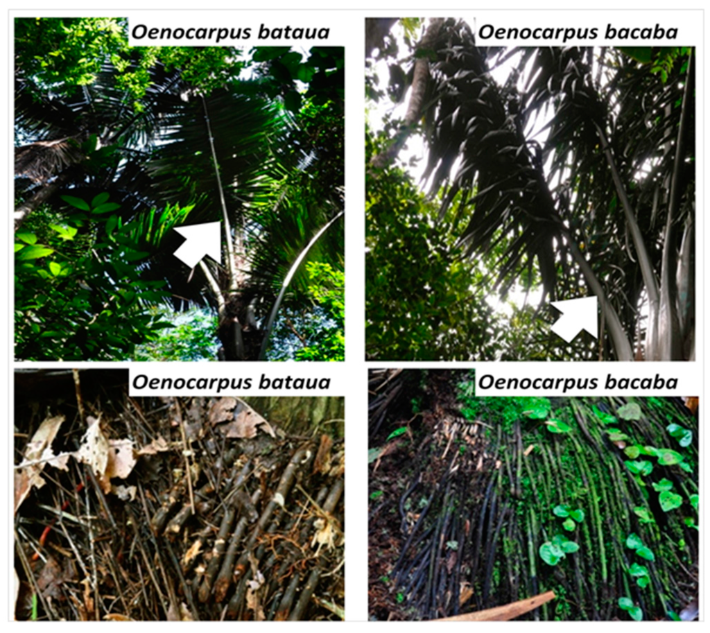 - Montúfar, R.; Laffargue, A.; Pintaud, J.-C.; Hamon, S.; Avallone, S.; Dussert, S. Oenocarpus bataua Mart. (Arecaceae): Rediscovering a source of high oleic vegetable oil from Amazonia. J. Am. Oil Chem. Soc. 2009, 87, 167–172. [Google Scholar] [CrossRef]