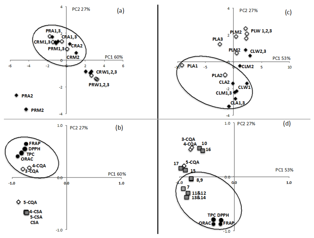 2.7. Relationship between Chemical Composition and Antioxidant Activity