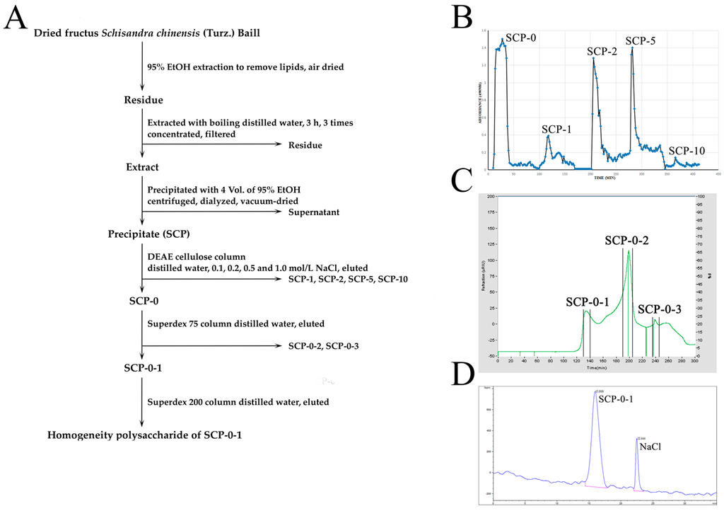 4.2. Extraction, Separation and Purification of S. chinensis Polysaccharide-0-1