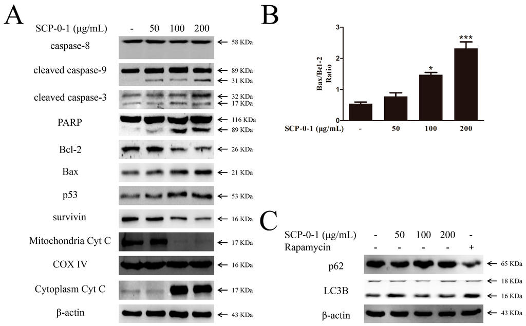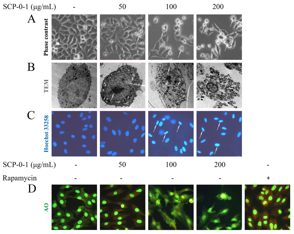 2.3. Cell Morphology Demonstrated that S. chinensis Polysaccharide-0-1 Induced Apoptosis Rather than Autophagy