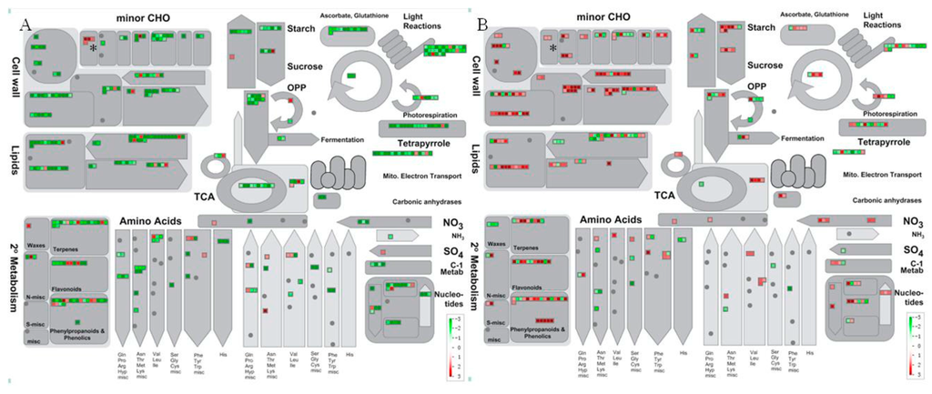 - Thimm, O.; Bläsing, O.; Gibon, Y.; Nagel, A.; Meyer, S.; Krüger, P.; Selbig, J.; Müller, L.A.; Rhee, S.Y.; Stitt, M. MAPMAN: A user-driven tool to display genomics data sets onto diagrams of metabolic pathways and other biological processes. Plant J. Cell Mol. Biol. 2004, 37, 914–939. [Google Scholar] [CrossRef]