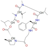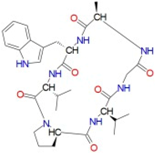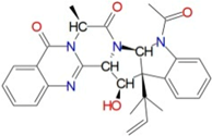 The ZINC NPD, [] which includes 11,247 compounds, was employed for virtual screening using the 3D structure of BaThrRS. All compounds in the database were processed (removal of all inorganic counterions, addition of hydrogen atoms, deprotonation of strong acids, protonation of strong bases, and generation of stereoisomers), and then subjected to the same docking procedure. After docking, compounds with docking scores lower than −11 kcal/mol were chosen for further analysis.