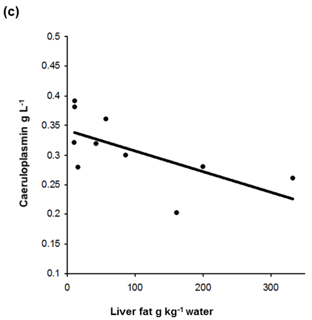 | Caeruloplasmin g·L−1 | −0.55 | 0.047 |