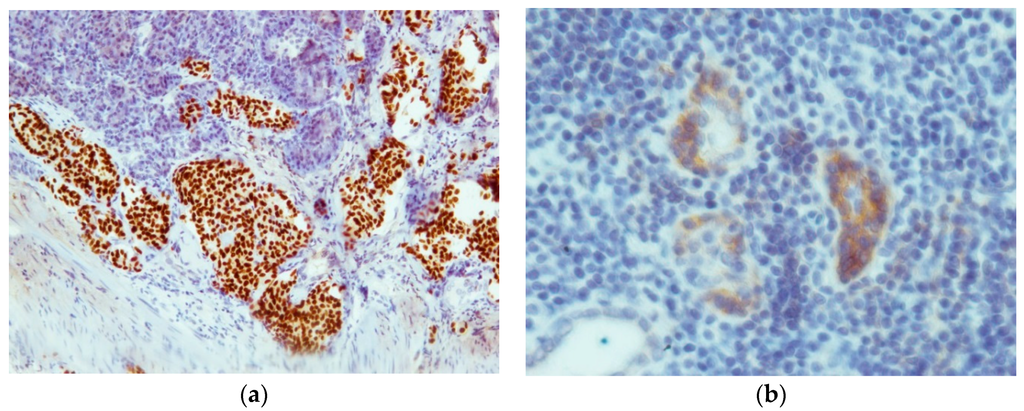 In MTC, the Ki-67 index correlates with the stage of the disease []. Primary tumors that had metastasized were found to have higher Ki-67 indices than primary tumors that had not metastasized. Recurrent lymph node metastases were shown to have higher Ki-67 indices than the primary tumors. The Ki-67 index can therefore be used as a prognostic marker in MTC.