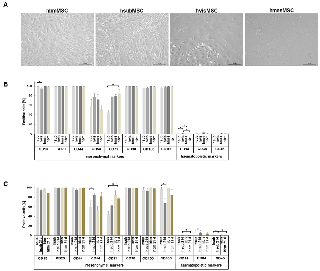 Morphology of the undifferentiated MSC from different origins was documented using the phase contrast microscope Primo Vert with the Zen software (Zeiss, Jena, Germany).
