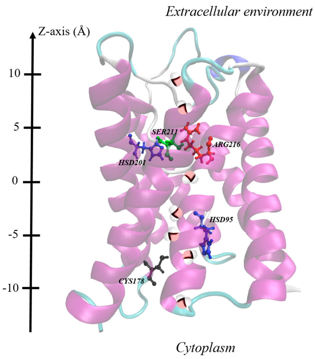 - Chakrabarti, N.; Tajkhorshid, E.; Roux, B.; Pomes, R. Molecular basis of proton blockage in aquaporins. Structure 2004, 12, 65–74. [Google Scholar] [CrossRef] [PubMed]