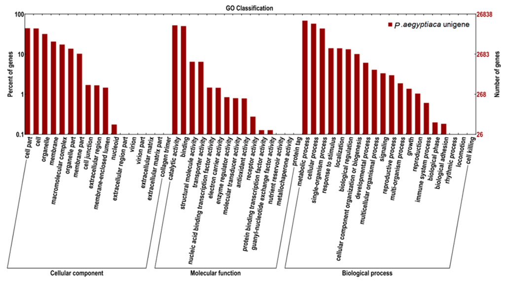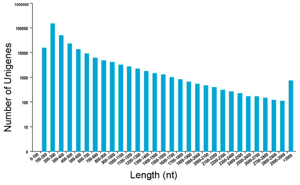 2.1. De Novo Assembly of P. aegyptiaca Transcriptome