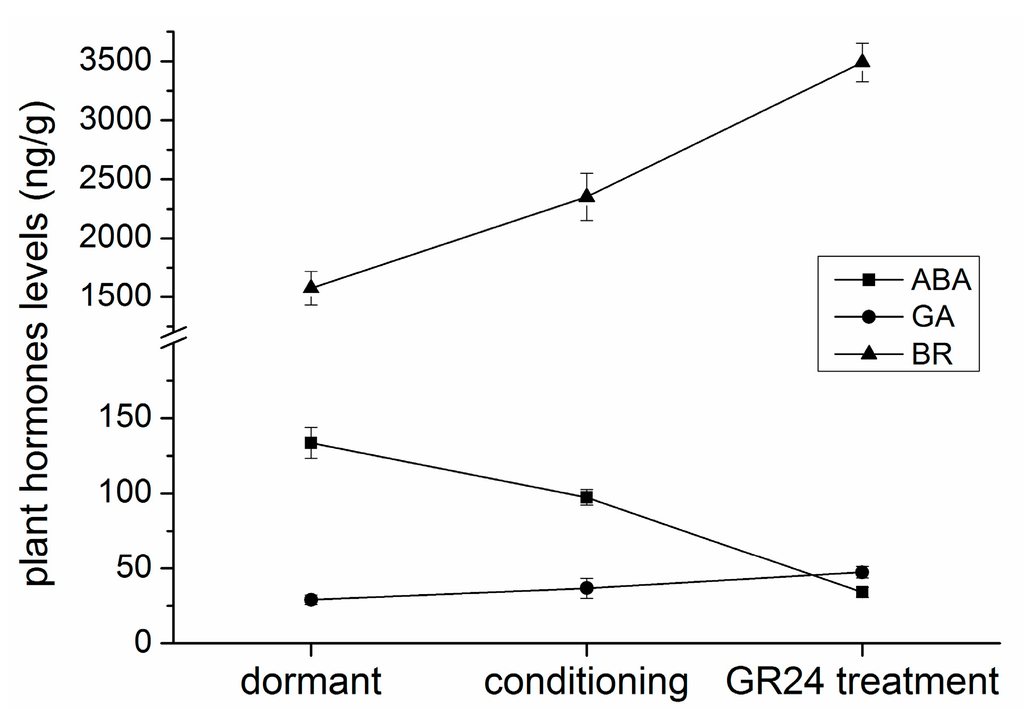 | GA3 | 0 a | 2.2 ± 2.2 a | 94.4 ± 1.1 h |