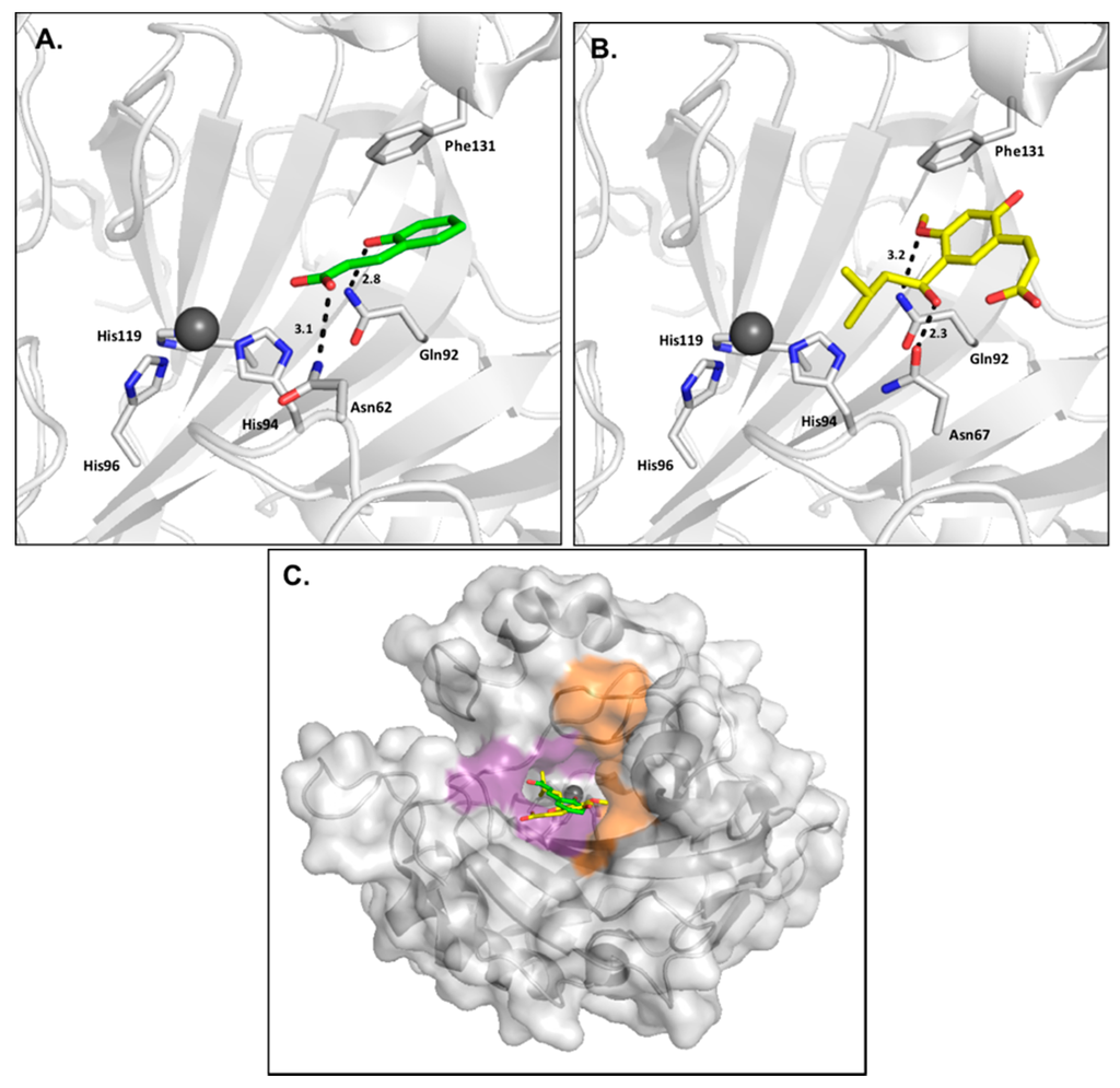 - Langella, E.; D’Ambrosio, K.; D’Ascenzio, M.; Carradori, S.; Monti, S.M.; Supuran, C.T.; De Simone, G. Combined crystallographic and theoretical study explains the capability of carboxylic acids to adopt multiple binding modes in the active site of carbonic anhydrases. Chem. Eur. J. 2016, 22, 97–100. [Google Scholar] [CrossRef] [PubMed]