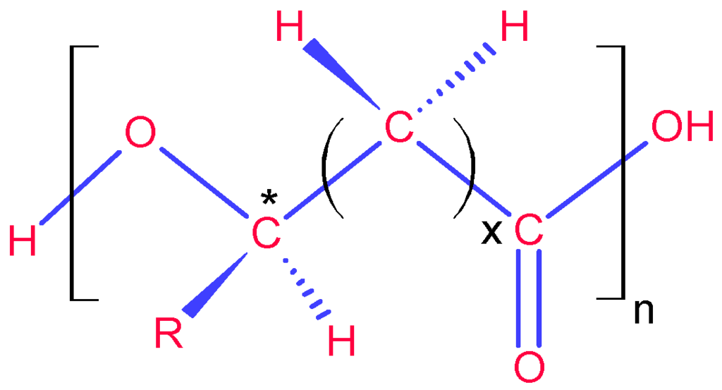 - Sudesh, K.; Abe, H.; Doi, Y. Synthesis, structure and properties of polyhydroxyalkanoates: Biological polyesters. Prog. Polym. Sci. 2000, 25, 1503–1555. [Google Scholar] [CrossRef]