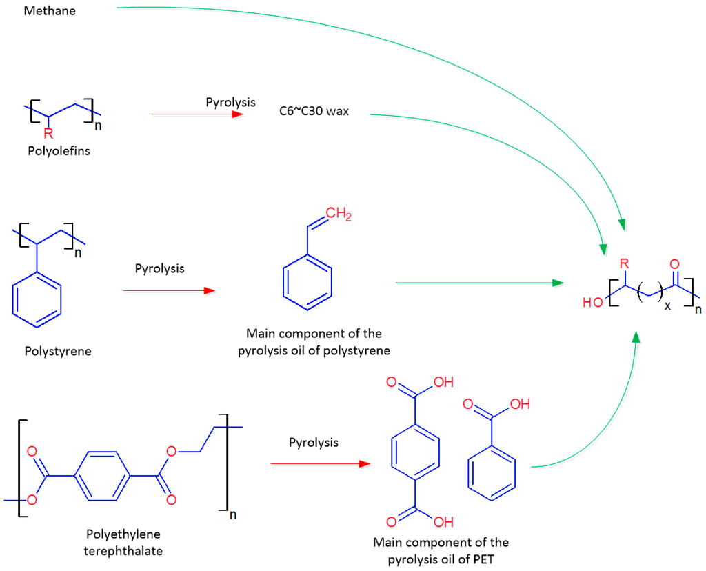 - Kenny, S.T.; Runic, J.N.; Kaminsky, W.; Woods, T.; Babu, R.P.; Keely, C.M.; Blau, W.; O’Connor, K.E. Up-cycling of PET (Polyethylene terephthalate) to the biodegradable plastic PHA (Polyhydroxyalkanoates). Environ. Sci. Technol. 2008, 42, 7696–7701. [Google Scholar] [CrossRef] [PubMed]