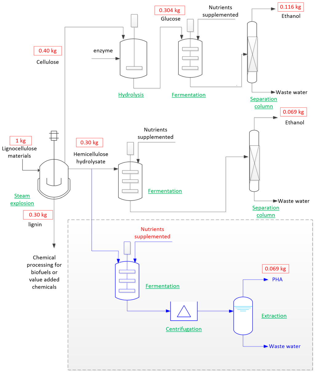 - Obruca, S.; Benesova, P.; Marsalek, L.; Marova, I. Use of lignocellulosic materials for PHA production. Chem. Biochem. Eng. Q. 2015, 29, 135–144. [Google Scholar] [CrossRef]