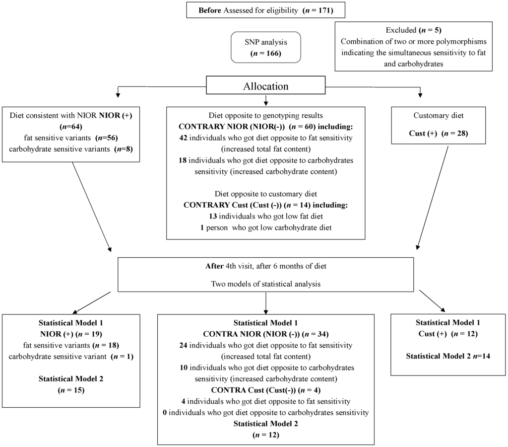 - NIOR (−) patients, when they had “fat-sensitive” gene variants, received dietary recommendations that increased total fat content up to 30% of TDEE.
